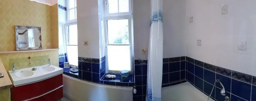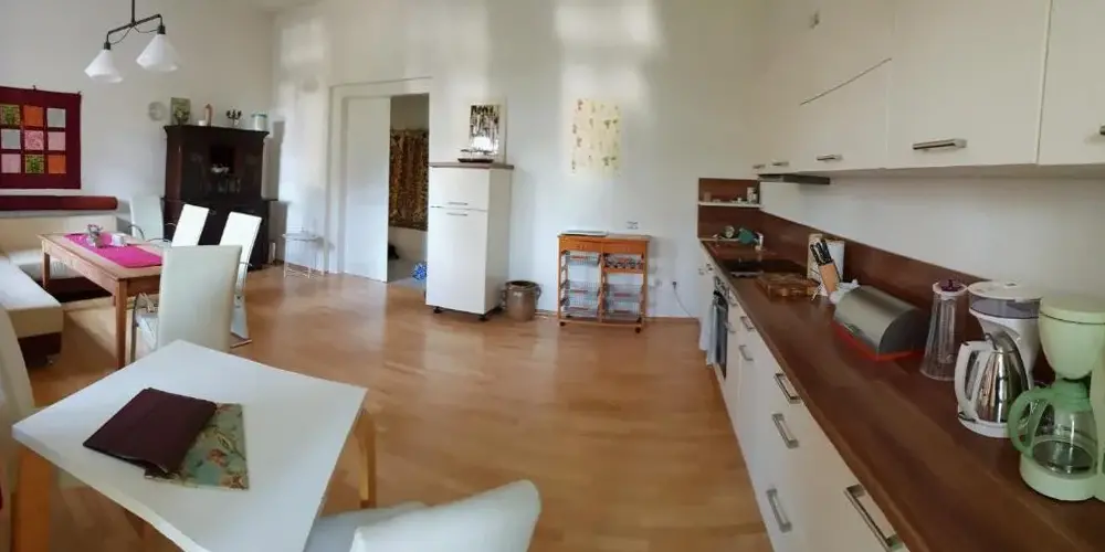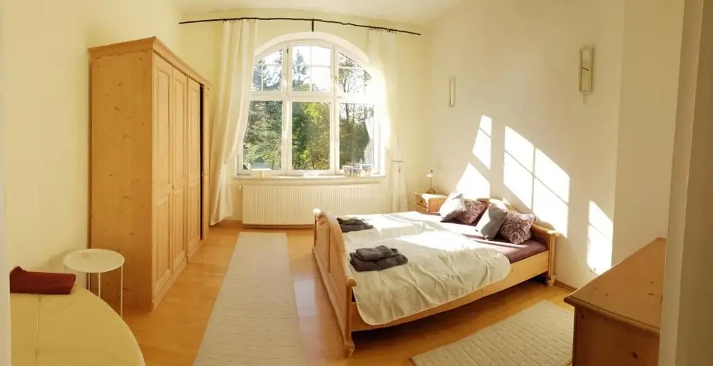 Der er kun et gardin og ingen dør mellem stuen og soveværelset.Et soveværelse er lille og meget mørkt.Det andet badeværelse er et toilet med en vask.En lille opvaskemaskine til en annonceret lejlighed til otte personer.Det var meget koldt, og der var ingen måde at varme noget på.Sengelinned med ødelagte lynlås og for lille klemmeklud.Det var ikke rent.